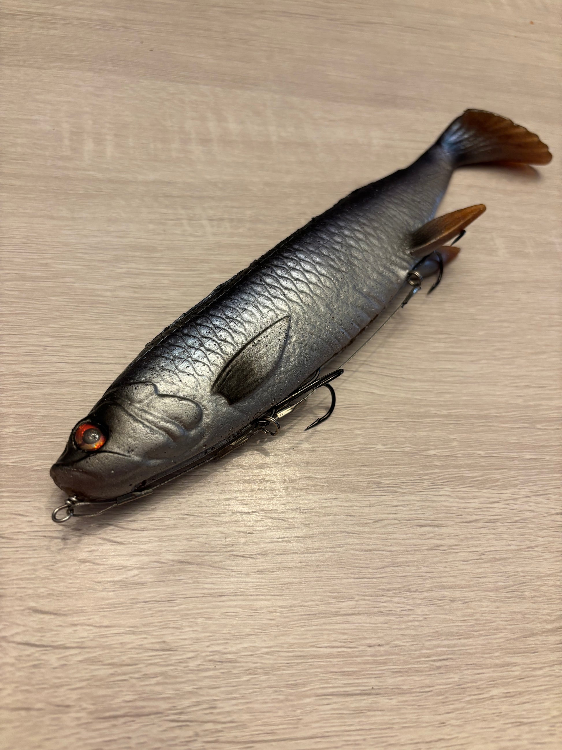 Le Centurion se distingue par son design séduisant et ses détails soignés il fait 118g pour 235 mm. Vendu deja monté et armés de BKK 2/0 sa rainure intégrée permet un montage shallow efficace, facilitant une nage naturelle et attractive. Ce big bait est idéal pour les pêcheurs exigeants à la recherche d’un leurre à la fois esthétique et fonctionnel.